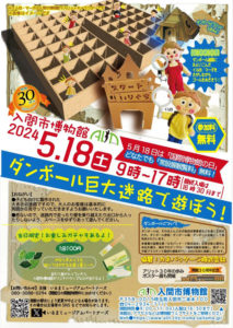 2024年5月18日の“国際博物館の日“にちなんで入間市博物館(入間市二本木100)にダンボール製の巨大迷路を寄付させて頂きました。お子様ならどなたでも無料でお楽しみ頂けます。