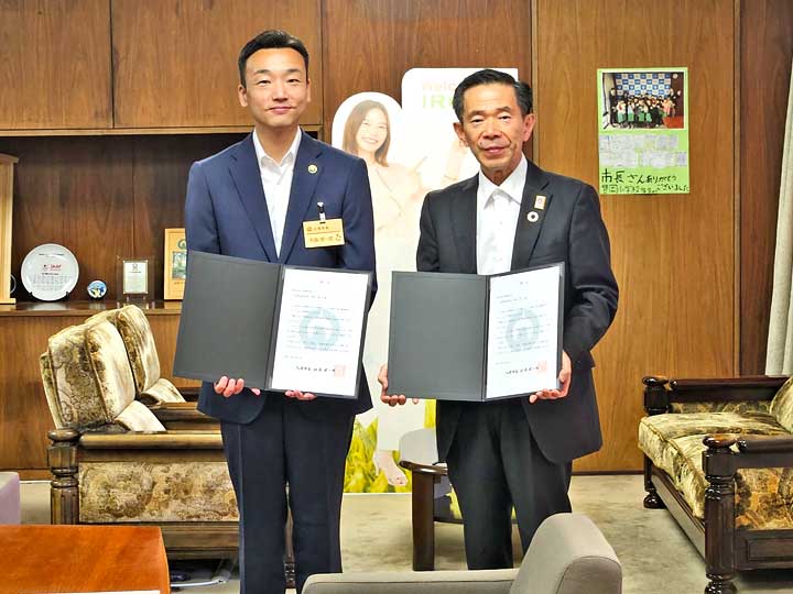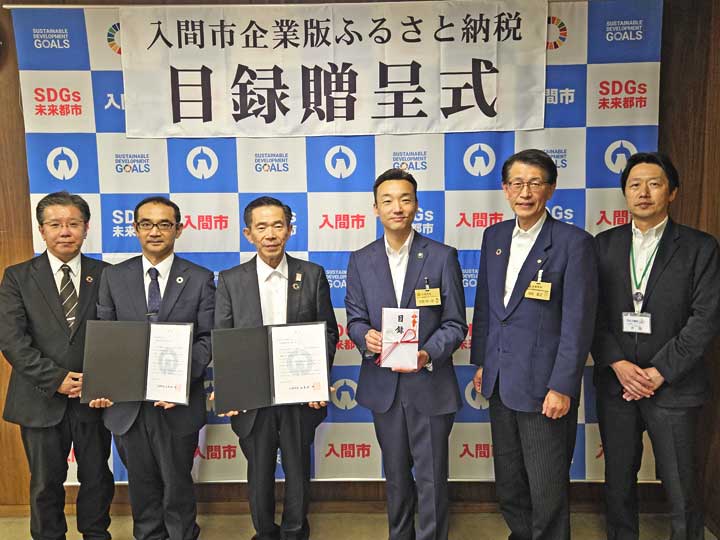 令和7年6月6日(金)、入間市役所に於きまして株式会社 三幸製作所及び株式会社 興伸工業からの“間伐材ベンチ”30台の贈呈式が行われました。
