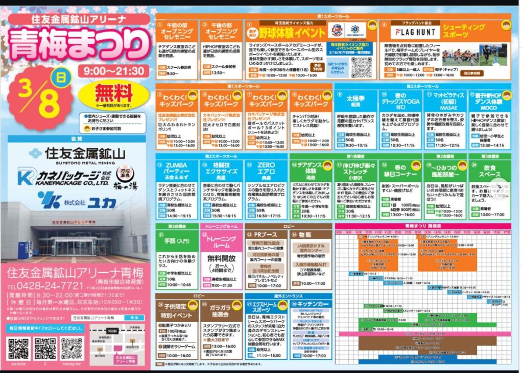 3月8日(日)に「住友金属鉱山アリーナ青梅」で開催される『青梅まつり』に、カネパッケージが協賛企業として参加いたします。
