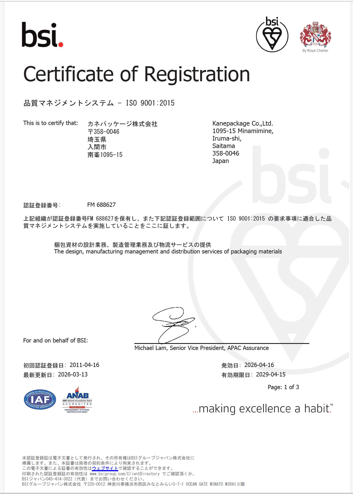 この認証取得は、私どもの品質管理体制が国際基準に達していることの客観的な証明です。 これにより、お客様には以下のことをお約束できると考えております。