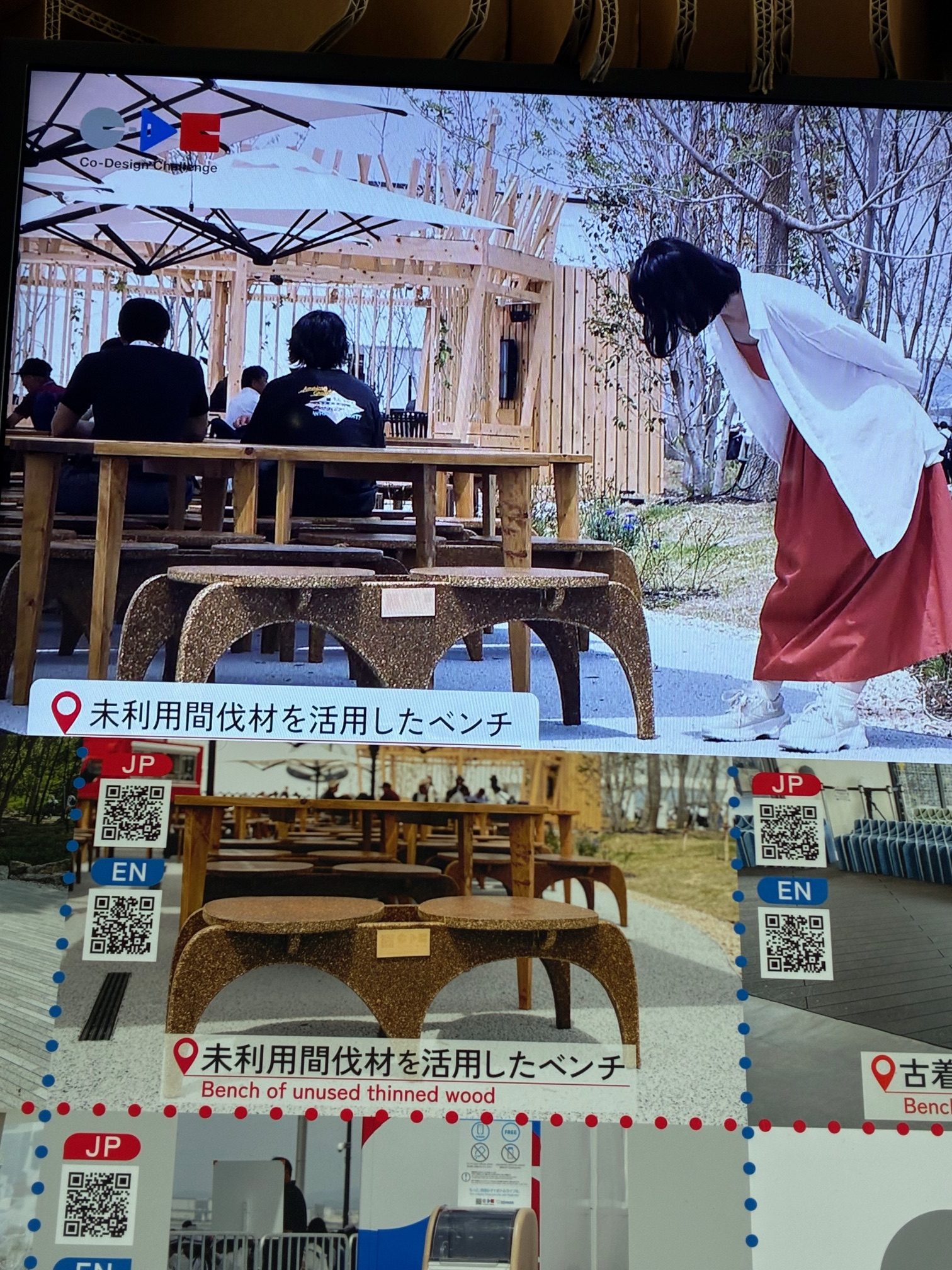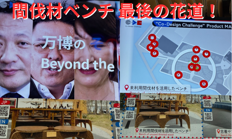 会期中、私たちが協力させていただいた「間伐材ベンチ」は、会場内で、本当にたくさんの方々の「ひと休み」を見守ってきました。