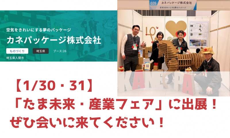 今週、1月30日(金)・31日(土)は『たま未来・産業フェア』です! 会場となる「東京たま未来メッセ」に、私たちカネパッケージが出展しております。